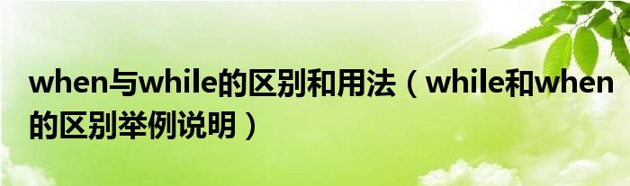 大家好,乐儿来为大家解答以下问题,when与while的区别和用法,while和when的区别举例说明很多人还不知道,现在让我们一起来看看吧!