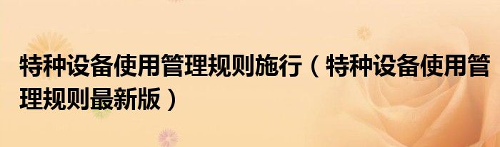 特种设备使用管理规则施行(特种设备使用管理规则最新版)