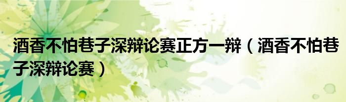 酒香不怕巷子深辩论赛正方一辩(酒香不怕巷子深辩论赛)