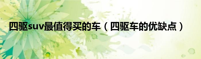 关于四驱suv最值得买的车,四驱车的优缺点这个很多人还不知道,今天菲菲来为大家解答以上的问题,现在让我们一起来看看吧!