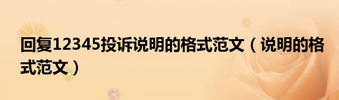 关于回复12345投诉说明的格式范文,说明的格式范文这个很多人还不知道,今天菲菲来为大家解答以上的问题,现在让我们一起来看看吧!