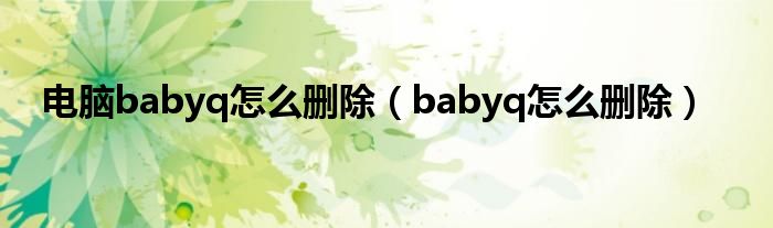 关于电脑babyq怎么删除,babyq怎么删除这个很多人还不知道,今天菲菲来为大家解答以上的问题,现在让我们一起来看看吧!