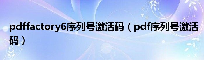pdffactory6序列号激活码(pdf序列号激活码)