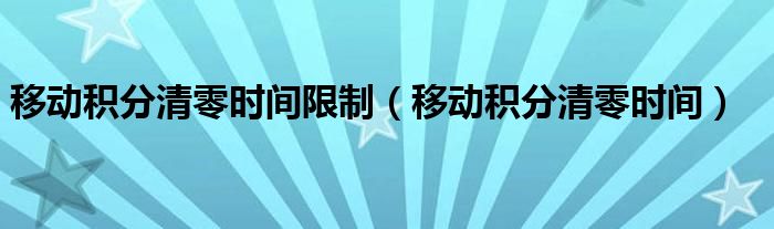 移动积分清零时间限制(移动积分清零时间)