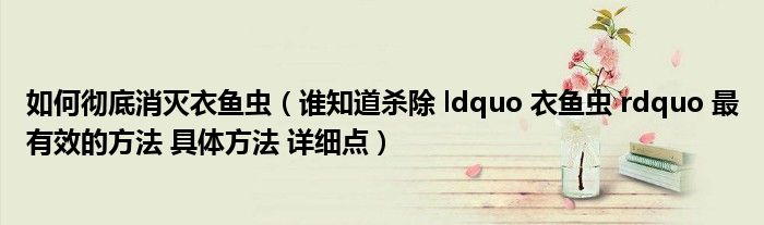 关于如何彻底消灭衣鱼虫,谁知道杀除 ldquo 衣鱼虫 rdquo 最有效的方法 具体方法 详细点这个很多人还不知道,今天菲菲来为大家解答以上的问题,现在让我们一起来看看吧!