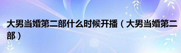 关于大男当婚第二部什么时候开播,大男当婚第二部这个很多人还不知道,今天菲菲来为大家解答以上的问题,现在让我们一起来看看吧!