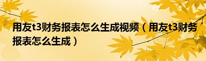 用友t3财务报表怎么生成视频(用友t3财务报表怎么生成)