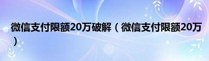 关于微信支付限额20万破解,微信支付限额20万这个很多人还不知道,今天菲菲来为大家解答以上的问题,现在让我们一起来看看吧!