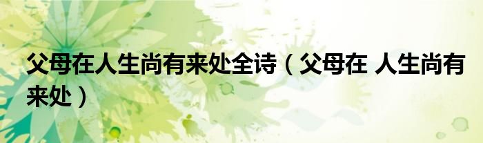 关于父母在人生尚有来处全诗,父母在 人生尚有来处这个很多人还不知道,今天菲菲来为大家解答以上的问题,现在让我们一起来看看吧!