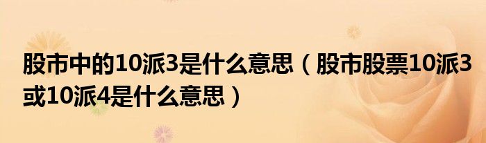 股市中的10派3是什么意思(股市股票10派3或10派4是什么意思)