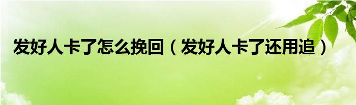 发好人卡了怎么挽回(发好人卡了还用追)