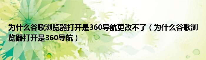 为什么谷歌浏览器打开是360导航更改不了(为什么谷歌浏览器打开是360导航)