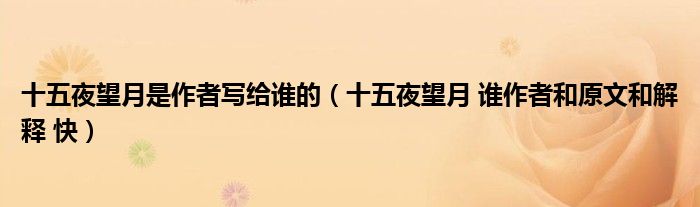 十五夜望月是作者写给谁的(十五夜望月 谁作者和原文和解释 快)