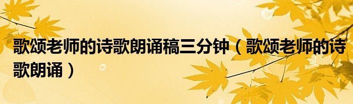 大家好,小联来为大家解答以上的问题。歌颂老师的诗歌朗诵稿三分钟,歌颂老师的诗歌朗诵这个很多人还不知道,现在让我们一起来看看吧!