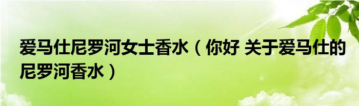 大家好,小联来为大家解答以上的问题。爱马仕尼罗河女士香水,你好 关于爱马仕的尼罗河香水这个很多人还不知道,现在让我们一起来看看吧!