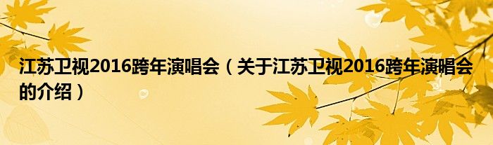 大家好,小虎来为大家解答以上的问题。江苏卫视2016跨年演唱会,关于江苏卫视2016跨年演唱会的介绍很多人还不知道,现在让我们一起来看看吧!