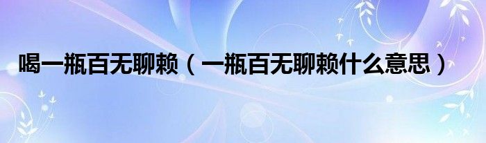 喝一瓶百无聊赖(一瓶百无聊赖什么意思)