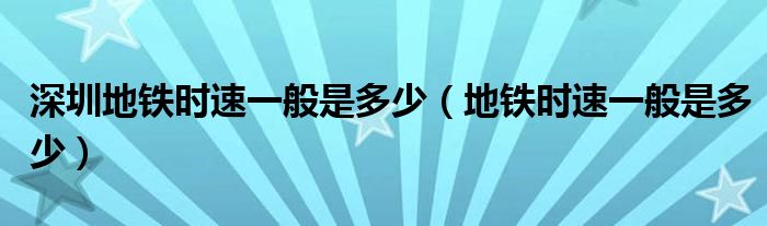 深圳地铁时速一般是多少(地铁时速一般是多少)