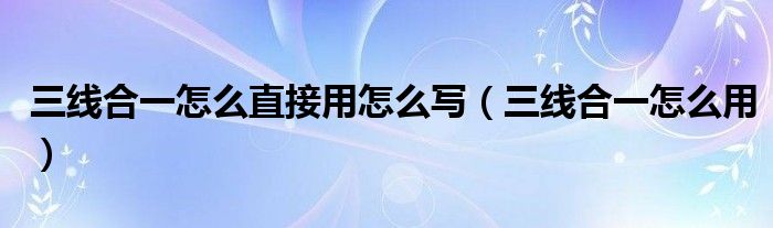 三线合一怎么直接用怎么写(三线合一怎么用)