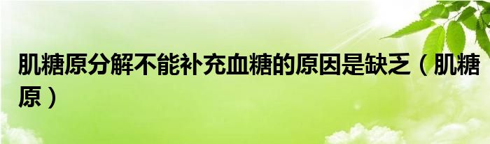 大家好,我是小科,我来为大家解答以上问题。肌糖原分解不能补充血糖的原因是缺乏,肌糖原很多人还不知道,现在让我们一起来看看吧!
