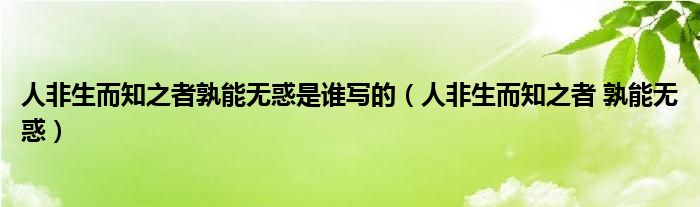 大家好,我是小科,我来为大家解答以上问题。人非生而知之者孰能无惑是谁写的,人非生而知之者 孰能无惑很多人还不知道,现在让我们一起来看看吧!