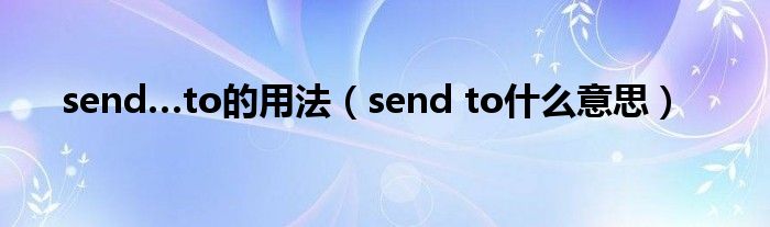 大家好,我是小科,我来为大家解答以上问题。send…to的用法,send to什么意思很多人还不知道,现在让我们一起来看看吧!