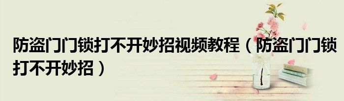 防盗门门锁打不开妙招视频教程(防盗门门锁打不开妙招)