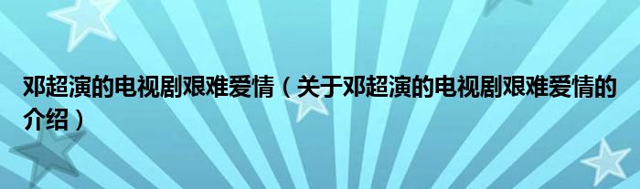 邓超演的电视剧艰难爱情(关于邓超演的电视剧艰难爱情的介绍)