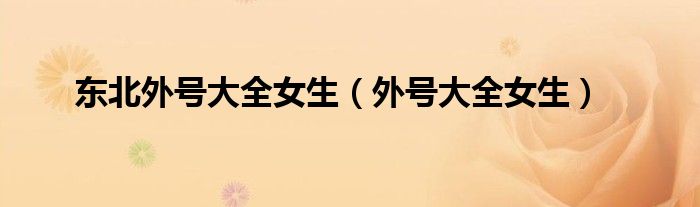 东北外号大全女生(外号大全女生)