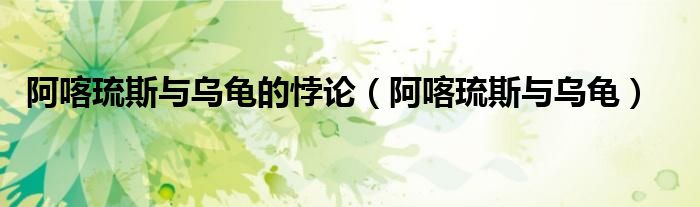 阿喀琉斯与乌龟的悖论(阿喀琉斯与乌龟)