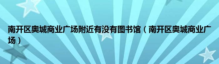 南开区奥城商业广场附近有没有图书馆(南开区奥城商业广场)