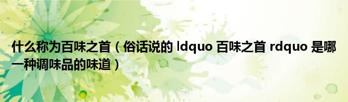 什么称为百味之首(俗话说的 ldquo 百味之首 rdquo 是哪一种调味品的味道)