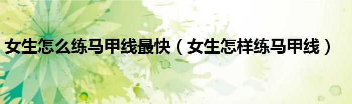 女生怎么练马甲线最快(女生怎样练马甲线)