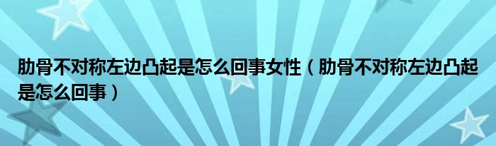 大家好,乐天来为大家解答以下的问题,肋骨不对称左边凸起是怎么回事女性,肋骨不对称左边凸起是怎么回事很多人还不知道,现在让我们一起来看看吧!