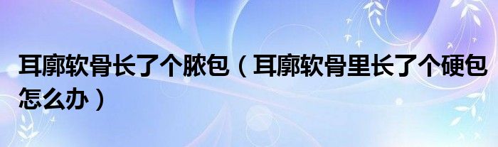 大家好,乐天来为大家解答以下的问题,耳廓软骨长了个脓包,耳廓软骨里长了个硬包怎么办很多人还不知道,现在让我们一起来看看吧!