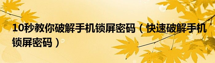 10秒教你破解手机锁屏密码(快速破解手机锁屏密码)
