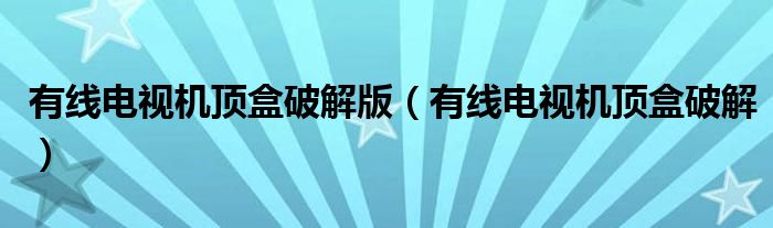 大家好,来宝来为大家解答以下问题,有线电视机顶盒破解版,有线电视机顶盒破解很多人还不知道,今天让我们一起来看看吧!