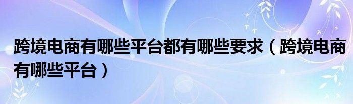 跨境电商有哪些平台都有哪些要求(跨境电商有哪些平台)