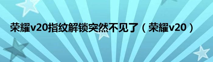 大家好,来宝来为大家解答以下问题,荣耀v20指纹解锁突然不见了,荣耀v20很多人还不知道,今天让我们一起来看看吧!