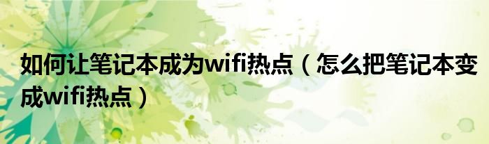 2、如何把笔记本变成wifi热点?