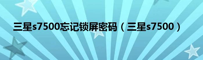 大家好,来宝来为大家解答以下问题,三星s7500忘记锁屏密码,三星s7500很多人还不知道,今天让我们一起来看看吧!