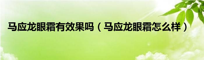 马应龙眼霜有效果吗(马应龙眼霜怎么样)