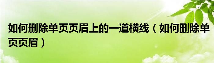 关于如何删除单页页眉上的一道横线,如何删除单页页眉这个很多人还不知道,今天菲菲来为大家解答以上的问题,现在让我们一起来看看吧!