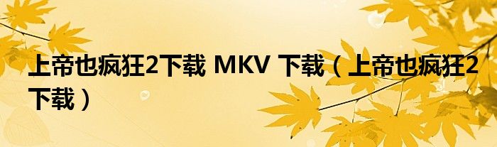 关于上帝也疯狂2下载 MKV 下载,上帝也疯狂2下载这个很多人还不知道,今天菲菲来为大家解答以上的问题,现在让我们一起来看看吧!