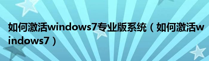 大家好,小飞来为大家解答以上问题,如何激活windows7专业版系统,如何激活windows7很多人还不知道,现在让我们一起来看看吧!