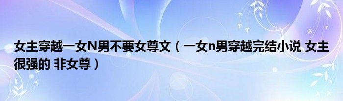 关于女主穿越一女N男不要女尊文,一女n男穿越完结小说 女主很强的 非女尊这个很多人还不知道,今天菲菲来为大家解答以上的问题,现在让我们一起来看看吧!