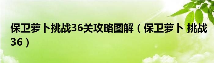大家好,来宝来为大家解答以下问题,保卫萝卜挑战36关攻略图解,保卫萝卜 挑战36很多人还不知道,今天让我们一起来看看吧!