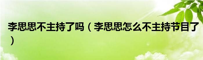 李思思不主持了吗,李思思怎么不主持节目了这个很多人还不知道,小飞来为大家解答以上的问题。现在让我们一起来看看吧!