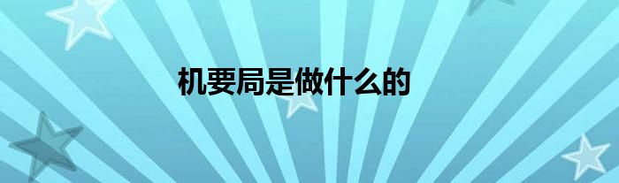 机要局是做什么的