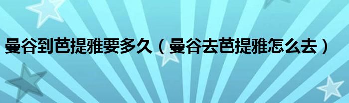 曼谷到芭提雅要多久(曼谷去芭提雅怎么去)